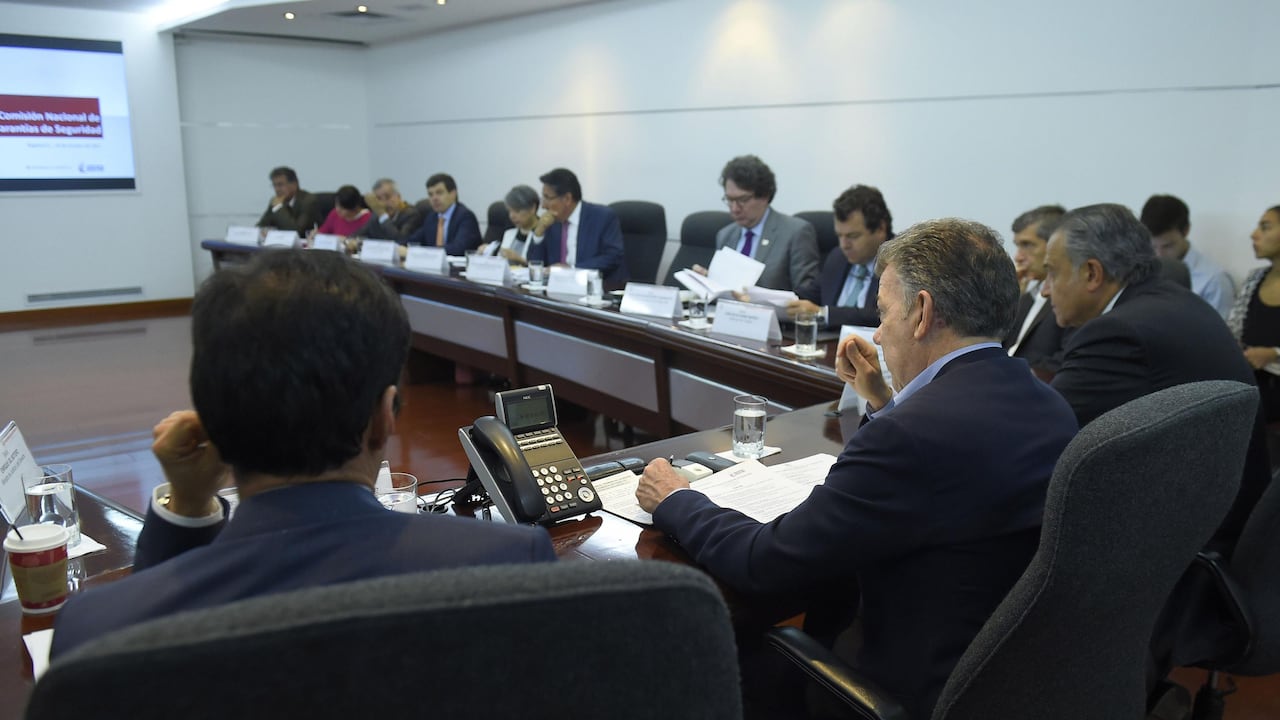 En la reunión estuvieron los ministros de Interior, Guillermo Rivera; Justicia, Enrique Gil, Defensa, Luis Carlos Villegas, el alto consejero del postconflicto, Rafael Pardo; y el fiscal general, Néstor Humberto Martínez, como también el procurador Fernando Carrillo, entre otros.