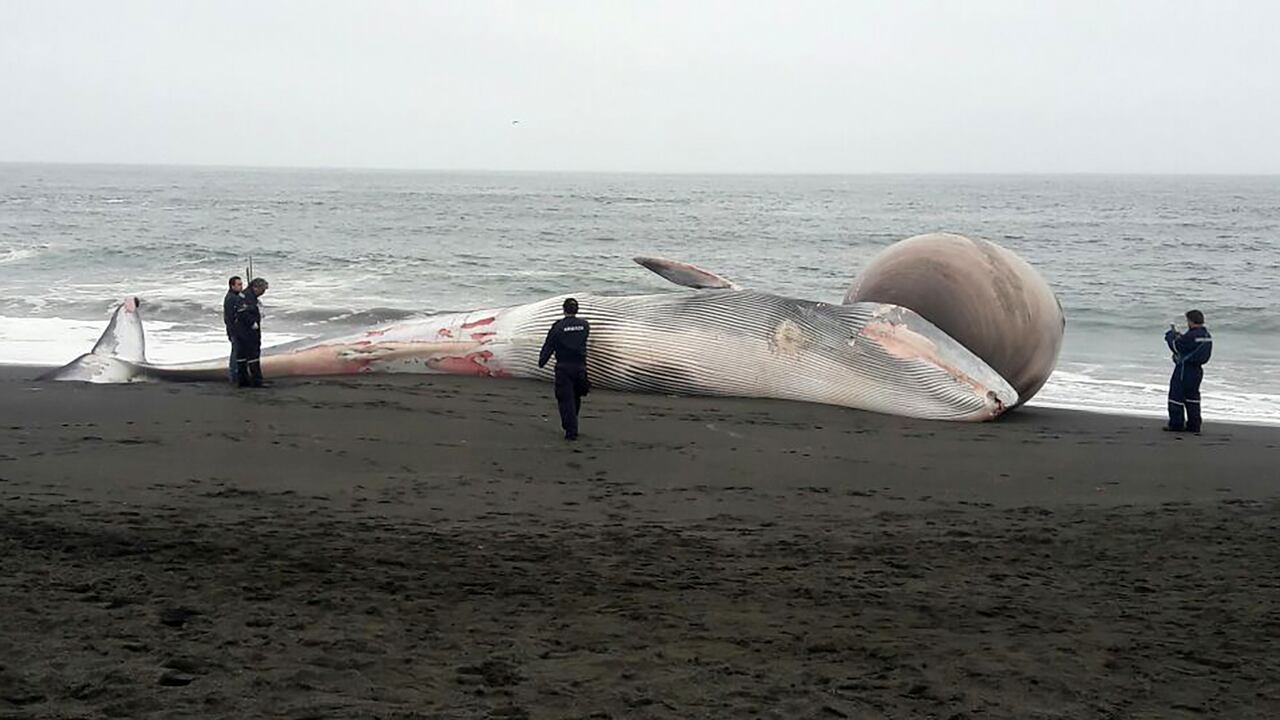 La tarde del jueves vecinos de Pelluhue habían alertado sobre la presencia de una ballena muerta en la playa principal de la localidad, ubicada en la región de El Maule, a unos 350 km al sur de Santiago.