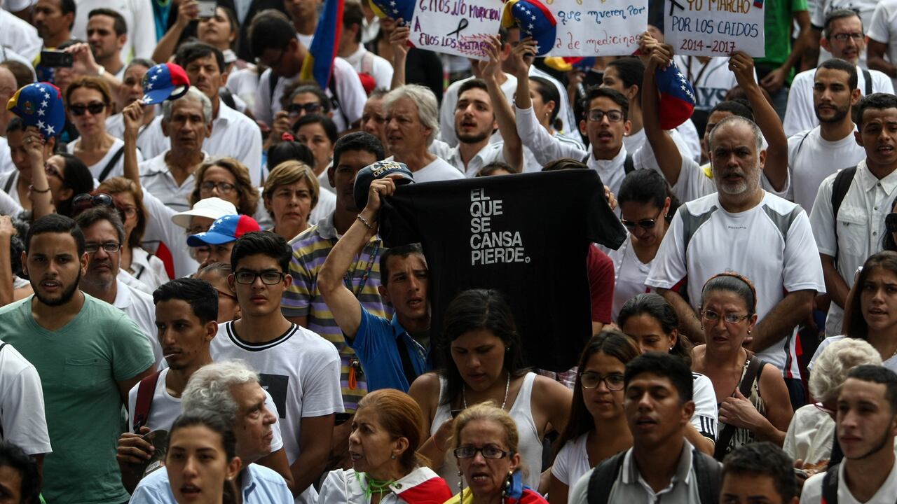 Los manifestantes piden que se restituya el hilo constitucional, que se convoque a elecciones, se libere a los políticos presos y se abra un canal humanitario para que al país ingresen alimentos y medicinas, entre otras demandas.