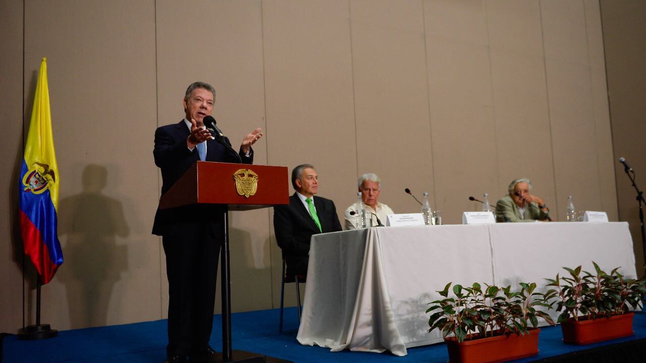 Desde el Centro de Eventos Valle del Pacífico, en Yumbo, el presidente Juan Manuel Santos se mostró complacido de que los expresidentes 'Pepe' Mujica (Uruguay) y Felipe González (de España) conformen la comisión internacional de seguimiento al acuerdo.