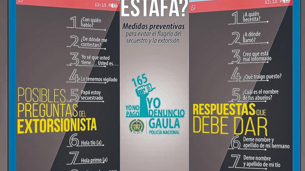 “Pero hay muchas modalidades de estafa y extorsión, como la famosa ‘tío-tía’, entre otras. Acá lo importante es no tragar entero y denunciar de inmediato al 123 o al 165. También en la sede del Gaula, en el barrio Alameda, detrás del Comfandi de La Quinta”, concluyó el oficial.