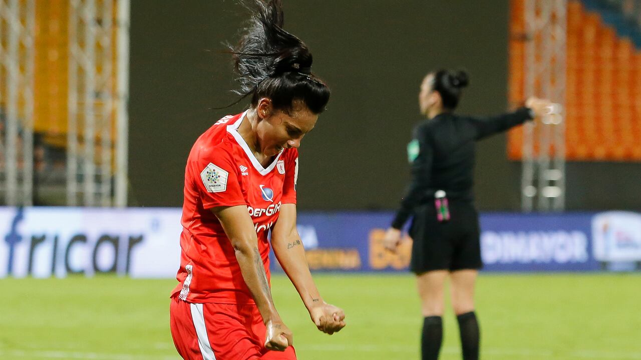 Un rechazo en largo de Tatiana Castañeda fue peinado por una jugadora escarlata y el balón cayó muerto a los pies de 'Guare', que no escatimó en prenderle 'mecha' al esférico y poner a celebrar a todo el pueblo escarlata.
