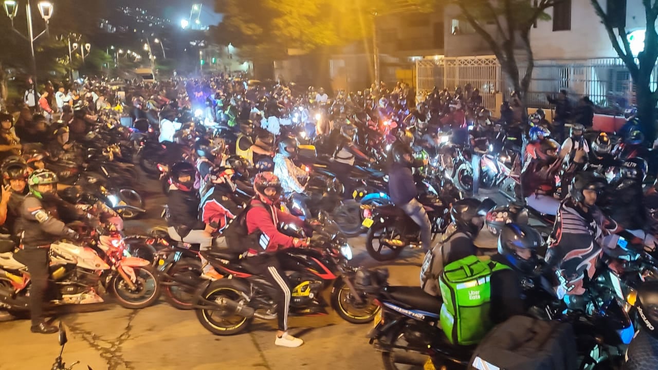 Alrededor de 300 moteros de Cali adelantan una protesta en la noche de este miércoles por las dificultades para conseguir el Soat en la ciudad y otras problemáticas que afectan la movilidad.
