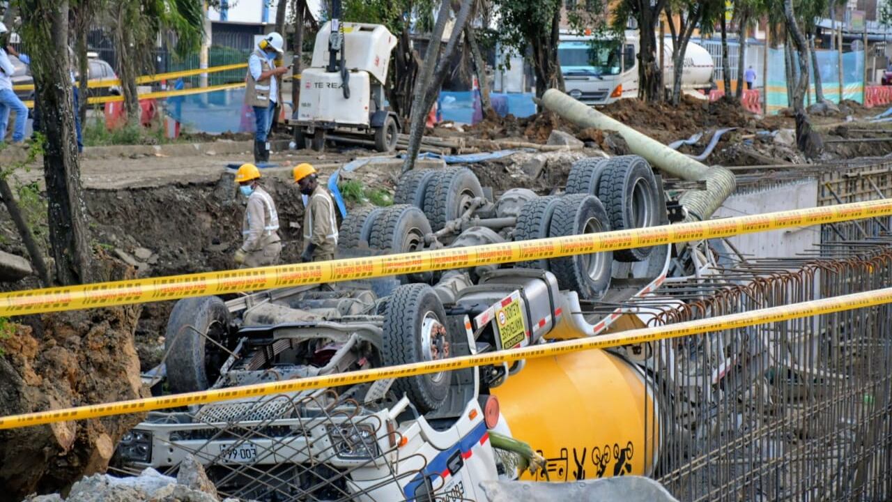 Hacia las 4:50 p.m. de este este viernes un camión mezclador de concreto cayó a un canal de aguas lluvias en construcción, en la Autopista Simón Bolívar, luego de que cediera el terreno. La emergencia, que se registró en la Carrera 41B con Calle 25, en el barrio República de Israel, fue atendida por el Cuerpo de Bomberos de Cali. Según indicó el cabo Marco Gómez, coordinador del Centro de Operaciones y Telemática de los Bomberos, en el lugar hizo presencia una máquina de rescate y una máquina bomba junto a seis unidades. El vehículo tipo ‘mixer’ se encontraba estacionado junto al canal de aguas lluvias en construcción y cayó tras presentarse un deslizamiento de tierra, quedando completamente volteado. No se reportaron personas lesionadas tras el hecho.
