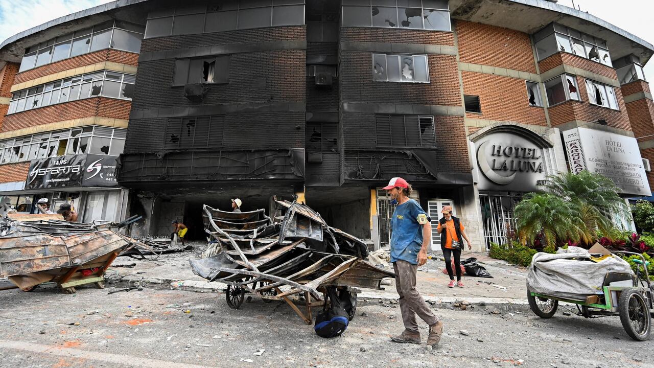 La madre de dos niños —de 7 y 16 años— cuenta con detalle su travesía para proveerse de alimentos. “Nos tocó irnos por un ladito del CAI de la Policía que quemaron y después pasar por la estación del MÍO que también quemaron. El camino parecía un campo de guerra, el Banco de Bogotá quemado, el Comfandi saqueado y también los almacenes del Éxito. Se metieron y dañaron un colegio. Cuando llegué, después de hacer una fila de dos horas, logré comprar una libra de carne”.