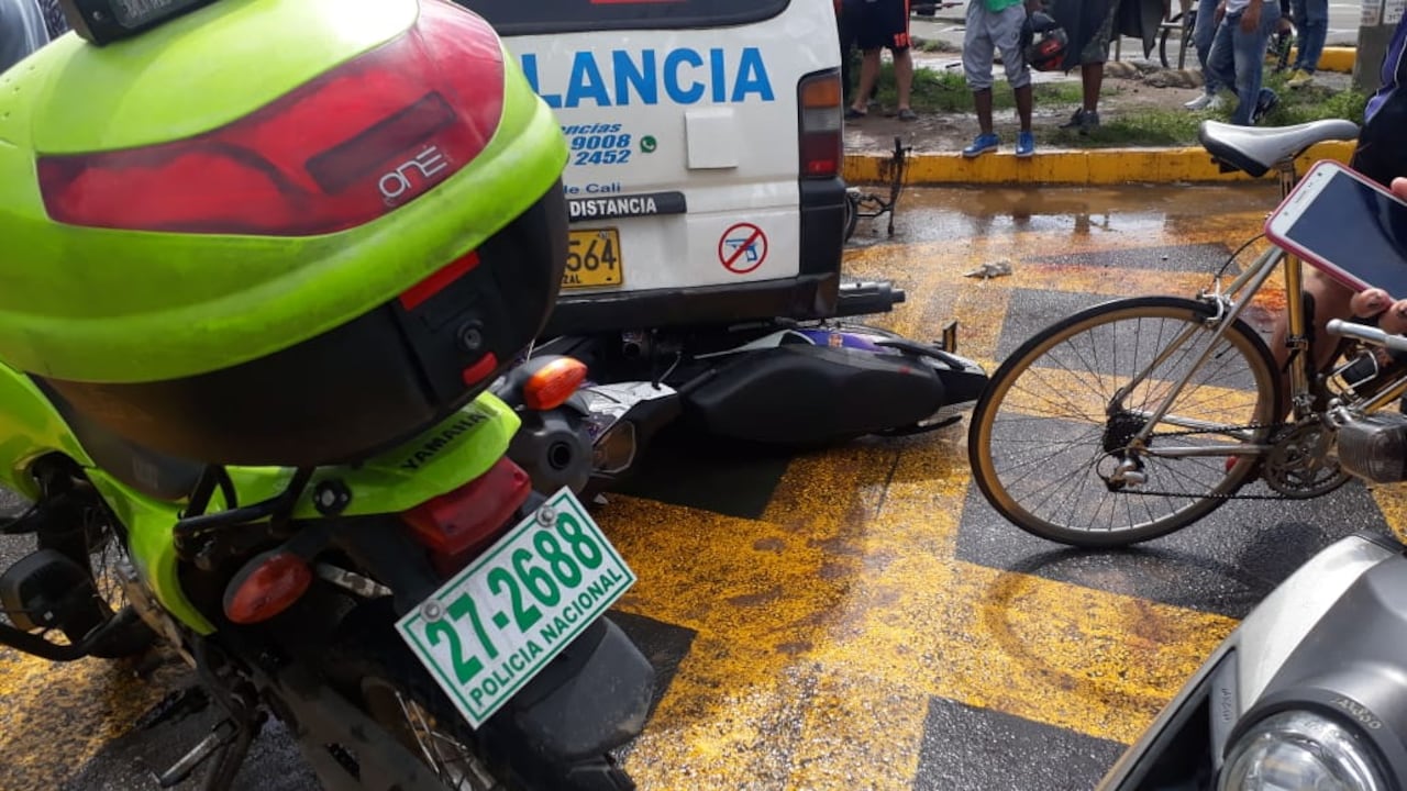 Cuatro personas resultaron heridas este lunes tras un accidente de tránsito que involucró a una motocicleta, una ambulancia y a una bicicleta sobre la Autopista Simón Bolívar, en el suroriente de Cali.