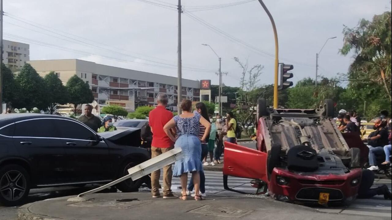 Dos personas resultaron heridas tras sufrir un aparatoso accidente de tránsito entre un Spark y un Mercedes en el sur de Cali