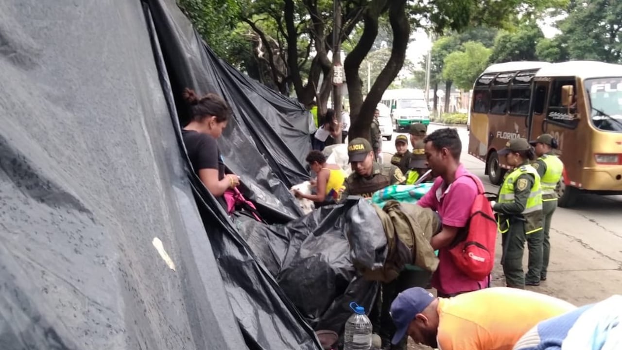 En la mañana de este viernes, la Policía Metropolitana y otros organismos de control realizaron una visita al campamento de migrantes venezolanos instalado frente a la Terminal de Transportes de Cali.
