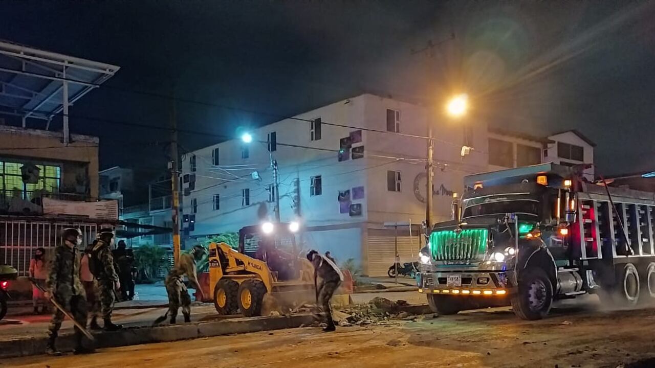 Hacia las 5:00 a.m. la Policía Metropolitana de Cali, el Escuadrón Móvil Antidisturbios, Esmad, y el Ejército Nacional se dirigieron al sitio para retirar tierra, postes, ramas y distintos elementos que habían sido utilizados para obstaculizar la vía.