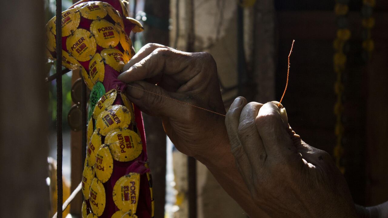 El hombre Póker recogía tapas en bailaderos del barrio, las sacaba de la basura, empezó a caminar mirando hacia el piso en la búsqueda de las esferas doradas. Ahora los recicladores le llevan las tapas a la puerta de su casa para vendérselas por cualquier peso.