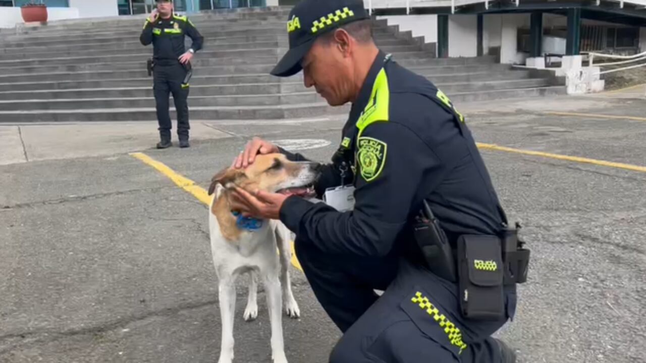 La Policía además contó que el canino se llama Lagaña y fue acogido desde hace un tiempo por los patrulleros de una estación y regresó sano y salvo a su hogar.
