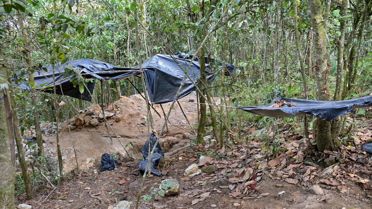Alrededor de los socavones, los que los abrieron hicieron una especie de carpa con plásticos negros, y en el suelo dejaron botellas del aperitivo Udinese. También hay por ahí botellas de gaseosa, empaques de cigarrillos, el estuche de un machete, y más adelante, alrededor de la quebrada de la que toma agua la gente, dejaron una especie de baño a cielo abierto: excrementos y papel higiénico enredado en las ramas.