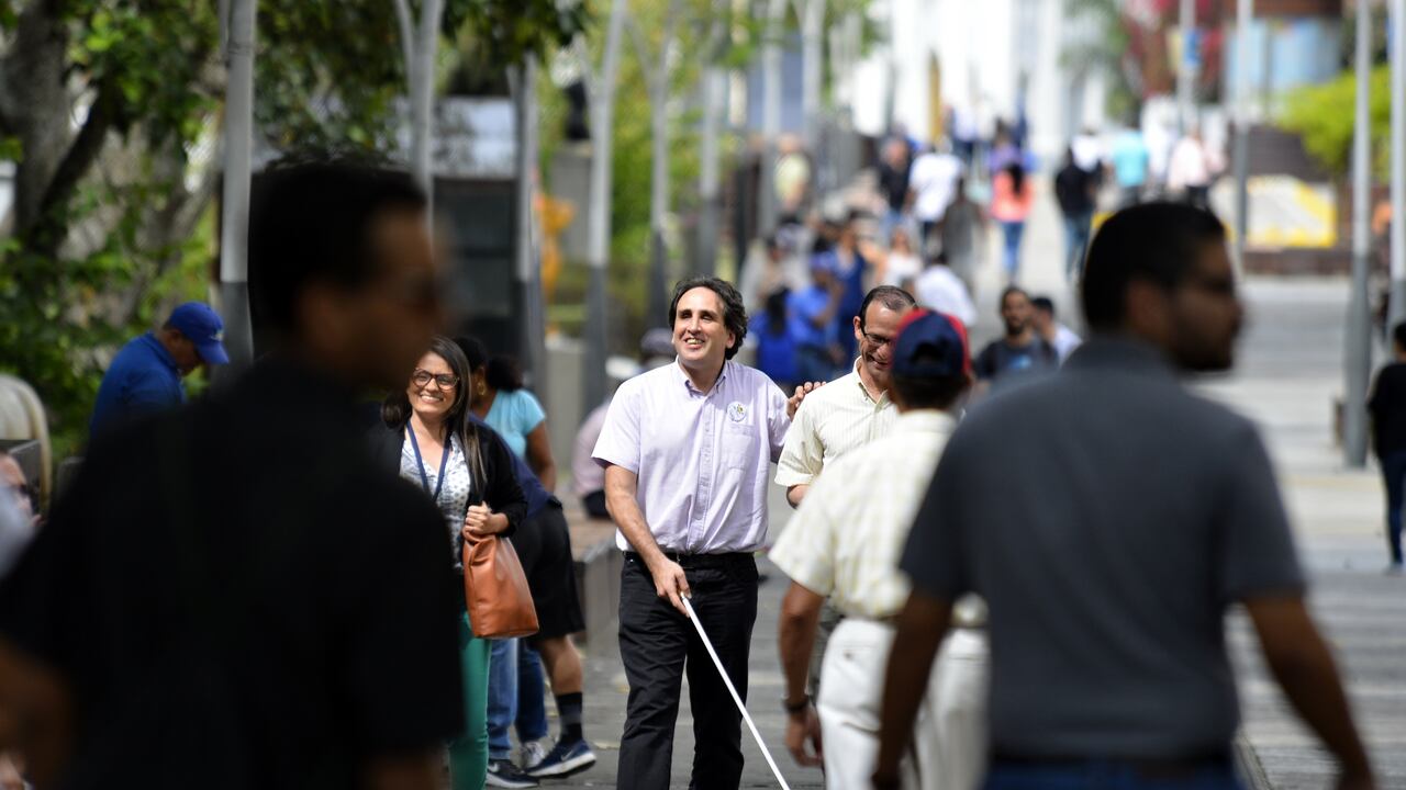Las personas con discapacidad visual utilizan un bastón blanco como guía para desplazarse en la ciudad, reconocer escalones, rampas, subidas y bajadas, cualquier espacio de la cintura hacia abajo.