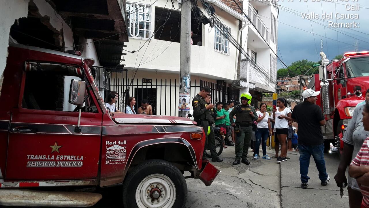 En la tarde de este jueves, los Bomberos de Cali atendieron una emergencia en el barrio Brisas de Mayo, donde un vehículo tipo guala se estrelló contra una pared de una vivienda.