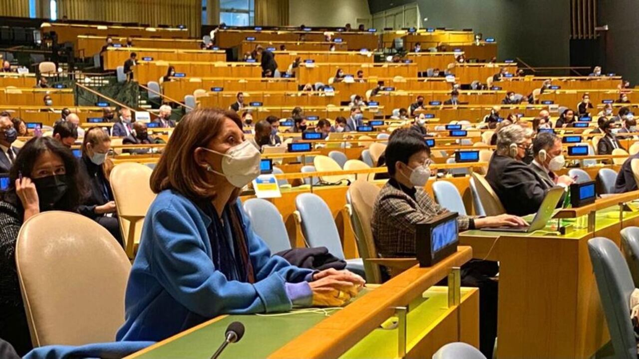 La vicepresidenta y canciller, Marta Lucía Ramírez, asistió este lunes a la Asamblea General Extraordinaria de la Organización de las Naciones Unidas (ONU), en donde se está discutiendo la resolución que rechaza la agresión a la soberanía y que vulnera los derechos de Ucrania por parte de Rusia y que es apoyada por Colombia.
