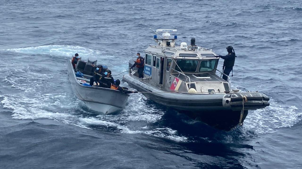 El operativo se llevó a cabo "en coordinación con autoridades marítimas de Estados Unidos (...) durante una persecución realizada en altamar a dos lanchas tipo Low Profile Vessel- LPV, interceptadas a 406 y 430 millas náuticas, respectivamente, al sur de Punta Remedios, en vistas de El Salvador", indicó la policía en un boletín.