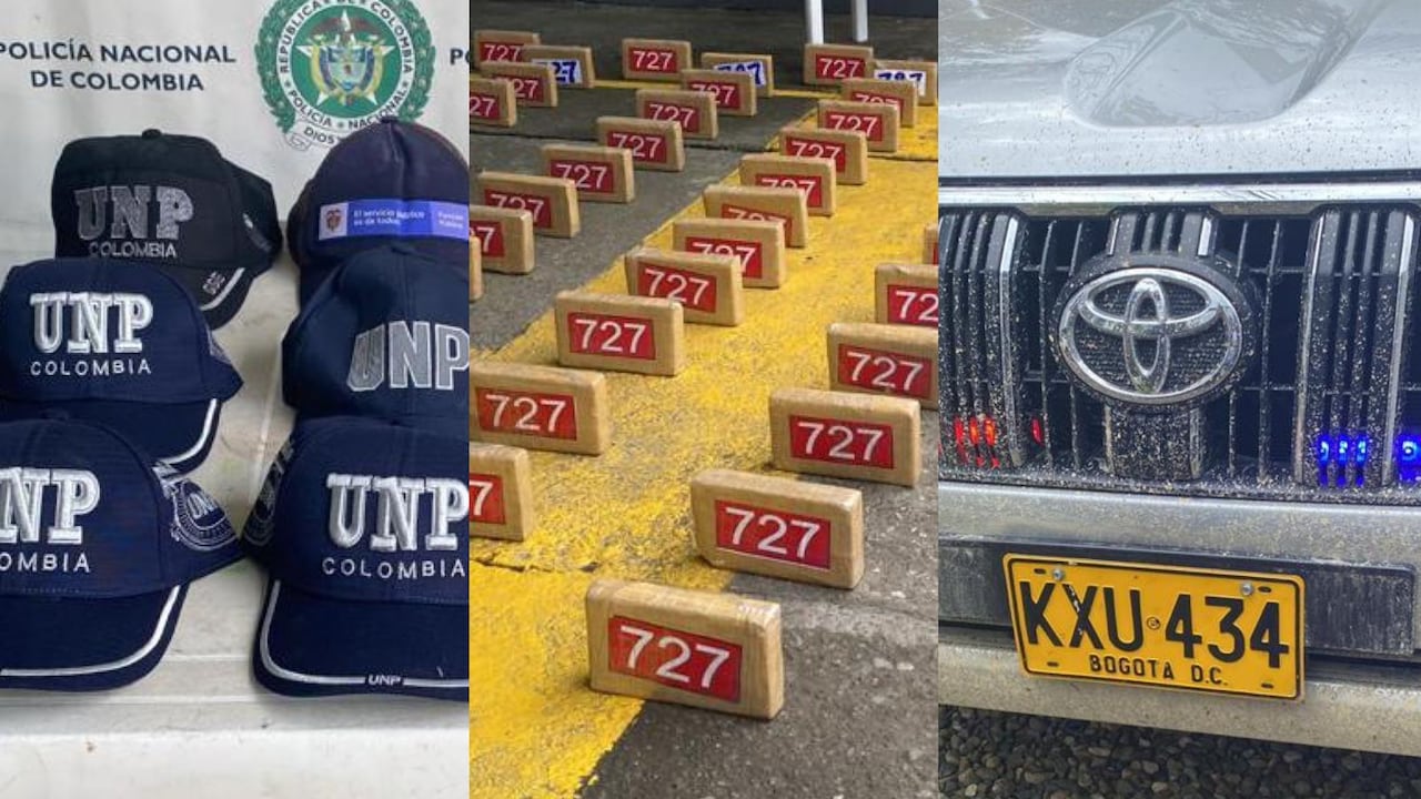 A través de redes sociales, la UNP confirmó que además de la droga, en el vehículo también se encontraron gorras, placas y demás emblemas de la entidad.