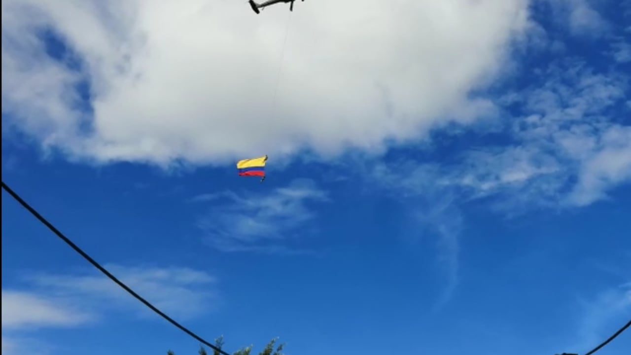 El periódico El Colombiano captó los momentos previos al accidente, donde se ve a los uniformados ondeando la bandera: