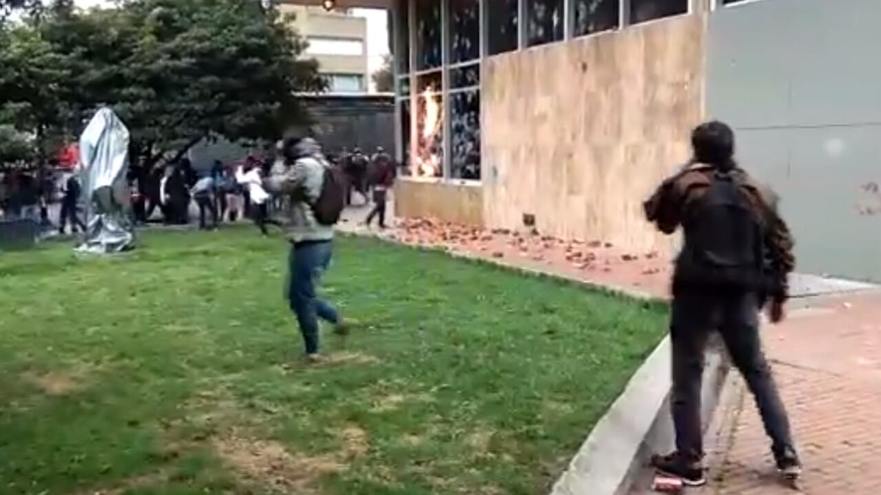 Encapuchados lanzaron piedras y bombas 'molotov' contra la sede ubicada en la Carrera. 3 No. 18-32, centro de la capital.