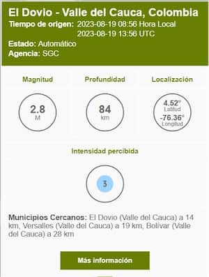 El SGC confirmó además que el temblor fue percibido en amplias regiones del país. Departamentos como Risaralda, Quindío, Caldas, Santander, Boyacá, Valle del Cauca, Córdoba, Tolima, Chocó, Cundinamarca y Norte de Santander también registraron reportes de ciudadanos que sintieron la vibración.