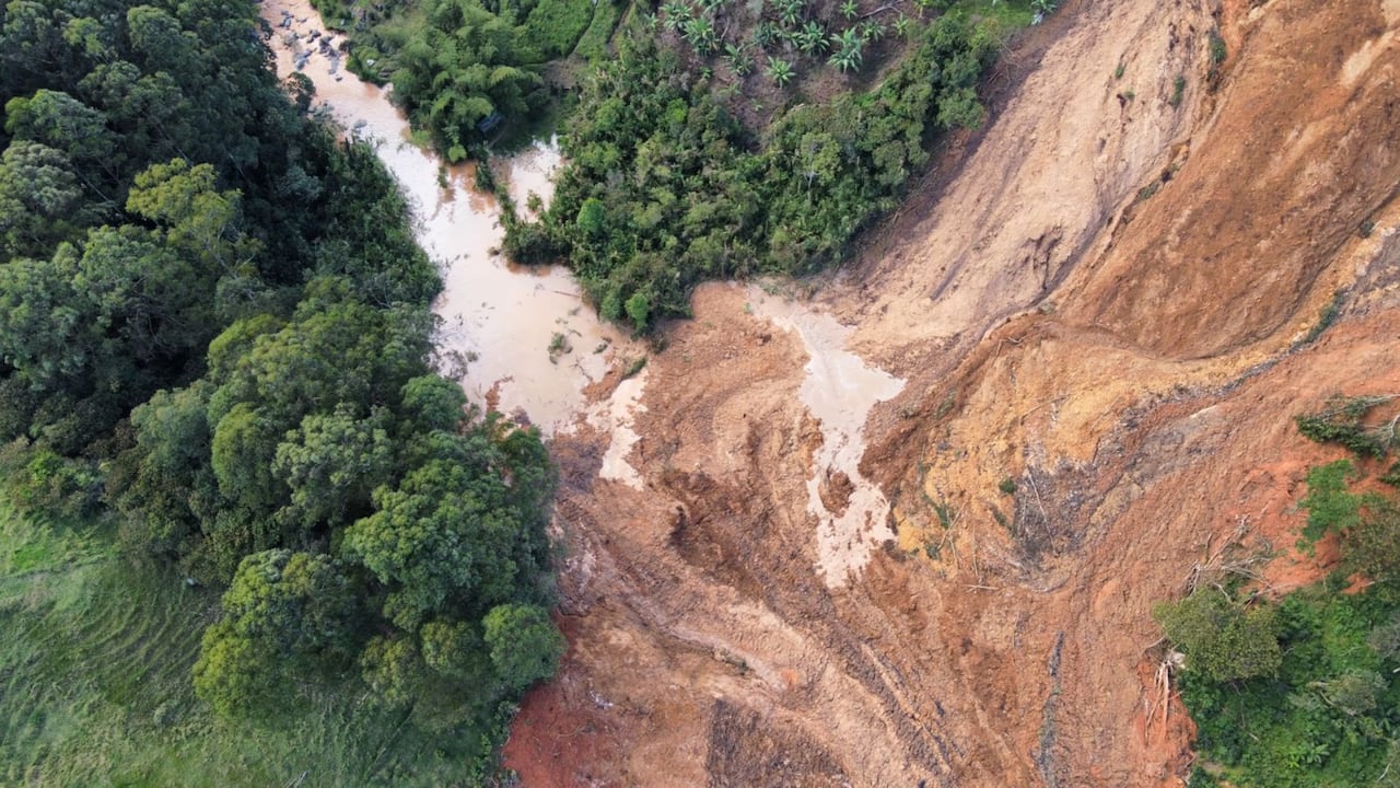 Escondida entre los árboles, una larga y gruesa línea café atravesando la ladera aún alcanzaba a verse en la zona aledaña al deslizamiento.