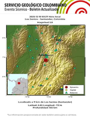 Ahora bien, según el reporte del SGC, este no fue el único evento durante este domingo, pues sobre la 1:34 a. m. y, se presentó también un fuerte sismo en el municipio de Los Santos, en el departamento del Santander.