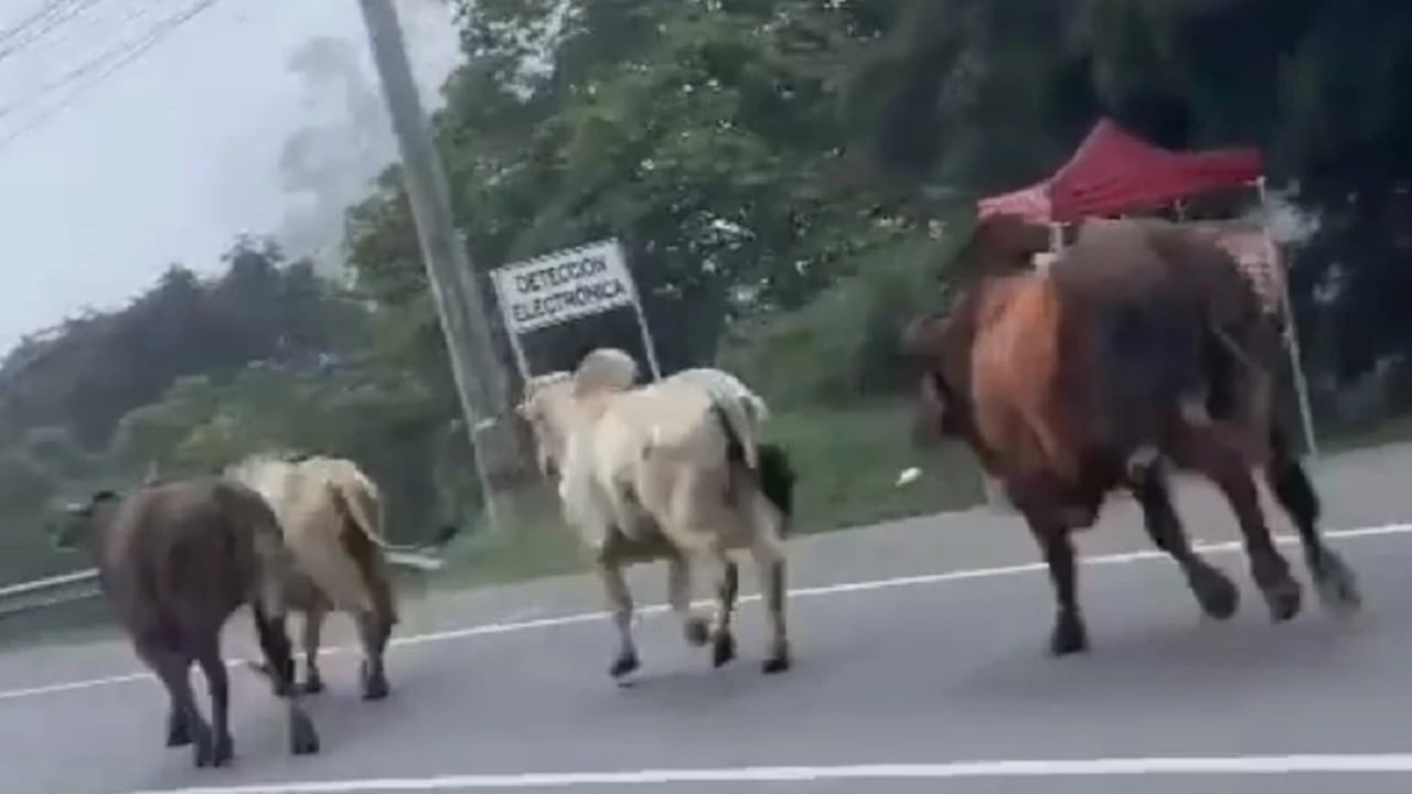 En varios videos compartidos en redes sociales se puede observar como los animales van corriendo por la vía de esta importante vía nacional a la altura del municipio de Guarne.