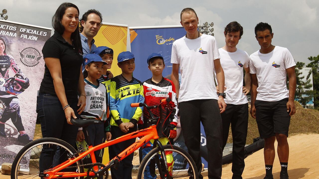 El británico Chris Froome, cuatro veces campeón del Tour de Francia, y la colombiana Mariana Pajón, bicampeona olímpica de BMX, compartieron este viernes con un grupo de niños en Medellín durante una actividad social que incluyó la entrega de bicicletas y útiles escolares.