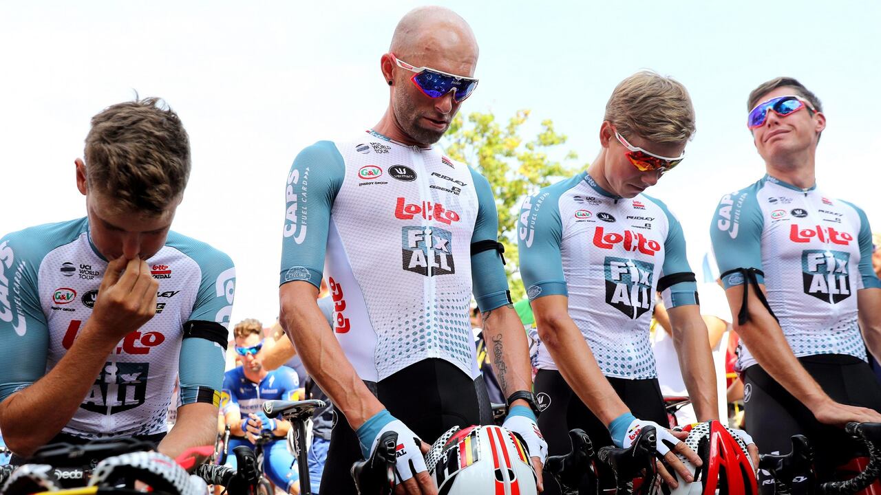 Se guardó un nuevo minuto de silencio por el pedalista del @Lotto_Soudal