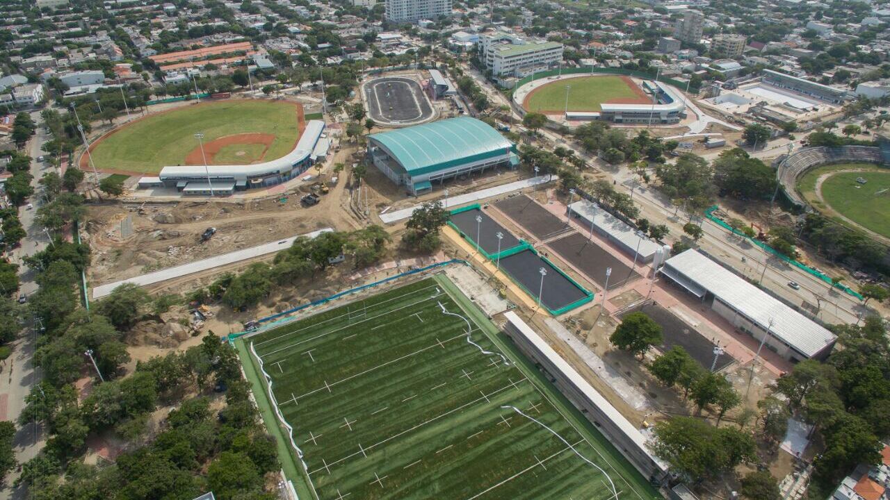 Según ese reporte, el avance en los escenarios es el siguiente: Sóftbol y béisbol, con el 99 %; el coliseo mayor, con el 92 %; el coliseo menor, con el 96 %; el complejo acuático, con el 90 %; el patinódromo, con el 91 %; el complejo de raquetas, con el 92 %; la cancha de rugby, con el 96 %; el estadio de fútbol, con el 74 %; el estadio de atletismo, con el 80 %, y la pista de BMX, con el 87 %.