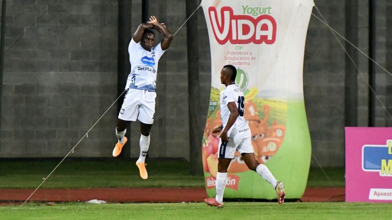 En un abrir y cerrar de ojos el Atlético FC de Cali se fue al ataque por intermedio del delantero Andrés Carabalí, el cual recuperó un balón desde la mitad de la cancha y mandó un pase al volante Sebastián Valenzuela que estaba ubicado en costado oriental, este acomodó un centro como con un guante, que fue cabeceando magistralmente por el delantero Yeison Mena quien embocó la pelota a la mano derecha del guardameta Juan Ramírez, que soló pudo posar su mirada para ver el primer gol del partido al minuto 23 de juego.