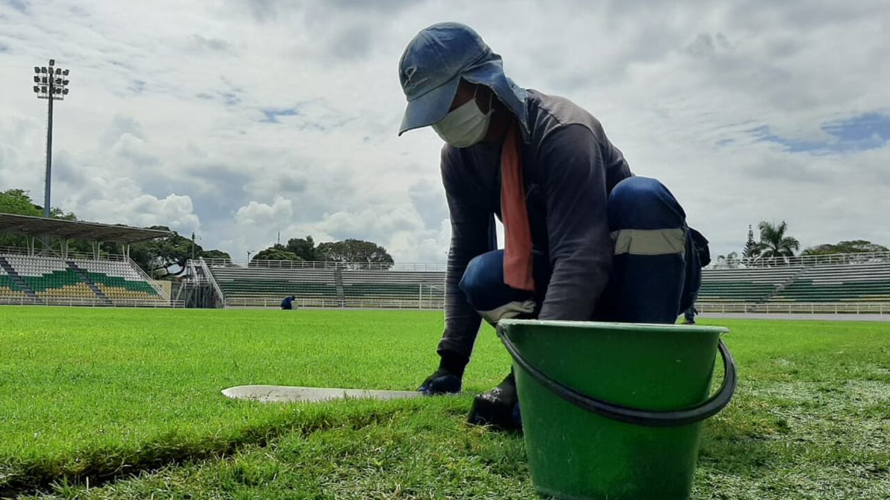 Hace unos días la grama del estadio Francisco Rivera Escobar generó preocupación cuando la grama se vio afectada por un proceso biológico.