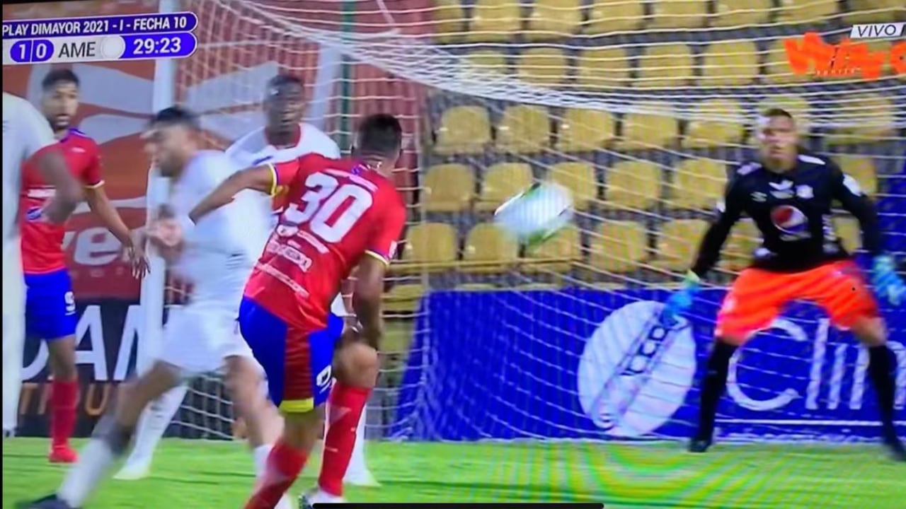 El jugador del Pasto recibió un pase y desde el borde del área, y de rabona, algo inusual o poco utilizado por los jugadores, remató al arco americano, pero el balón dio en el horizontal.