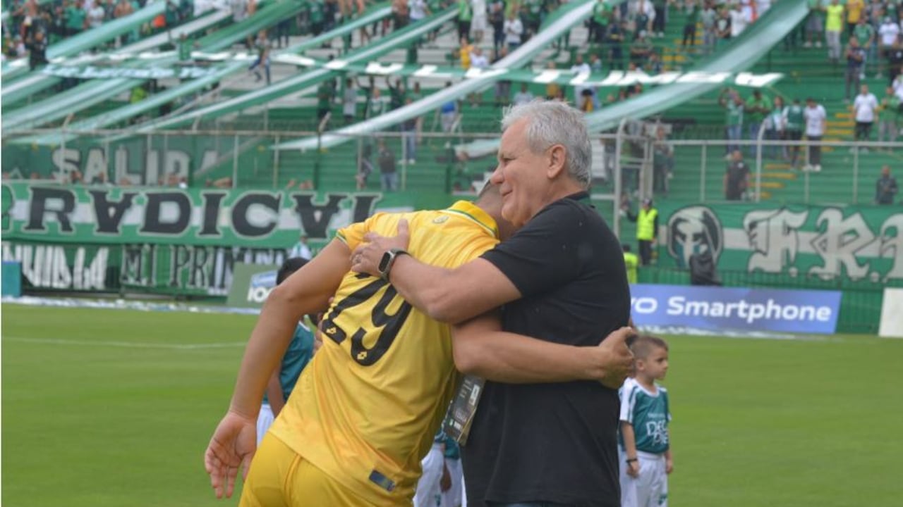 El jugador también saludó tímidamente a la hinchada, y antes de comenzar el partido se dio un fuerte abrazo con el presidente del Deportivo Cali, Luis Fernando Mena.