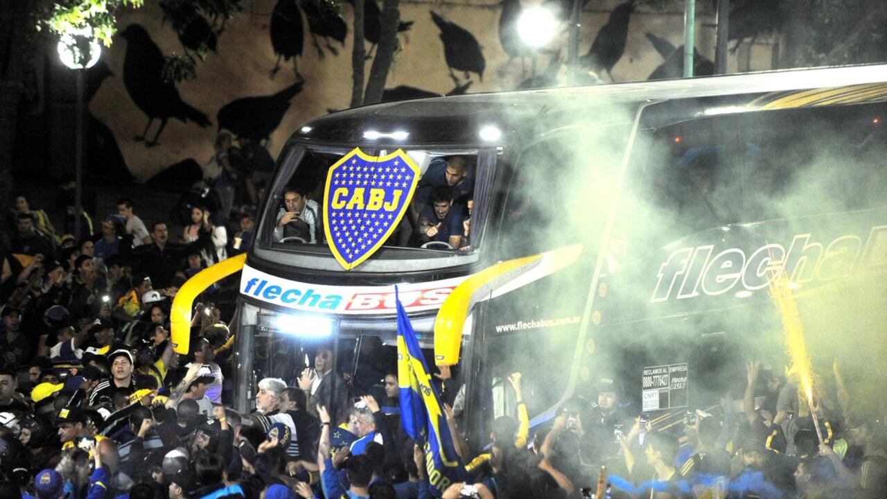 Los jugadores y el cuerpo técnico de Boca Juniors salieron desde los alrededores de la Bombonera y a la salida del barrio de La Boca les esperaba su afición, entre las que se encontraban miembros de la barra brava (ultras) relacionada al club, "La 12", que escoltaron al autobús entre cánticos y bengalas.