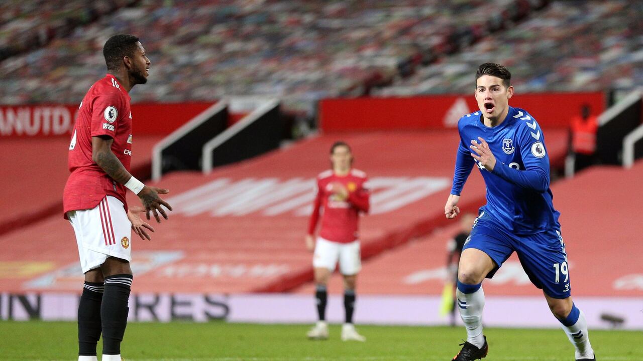 James Rodríguez fue una de las figuras del Everton en el empate ante el Manchester United. Yerry Mina estuvo en el banco de suplentes.
