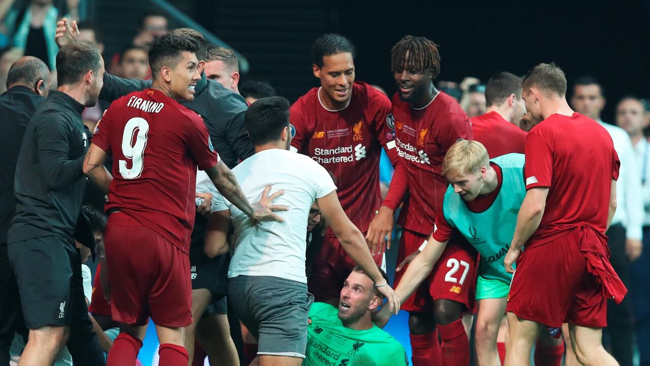 El portero del Liverpool Adrián San Miguel se lesionó en un tobillo durante la celebración de la Supercopa de Europa cuando un aficionado resbaló y le golpeó.