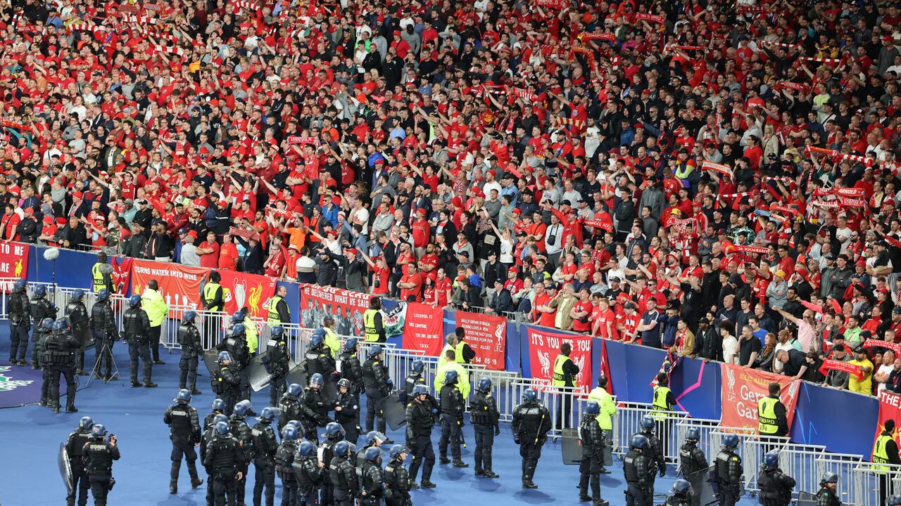 Aficionados del Liverpool y responsables locales cargaron el domingo contra la organización de la final de la Champions League contra el Real Madrid cerca de París, donde miles de fans no pudieron entrar al estadio y fueron repelidos por la policía.