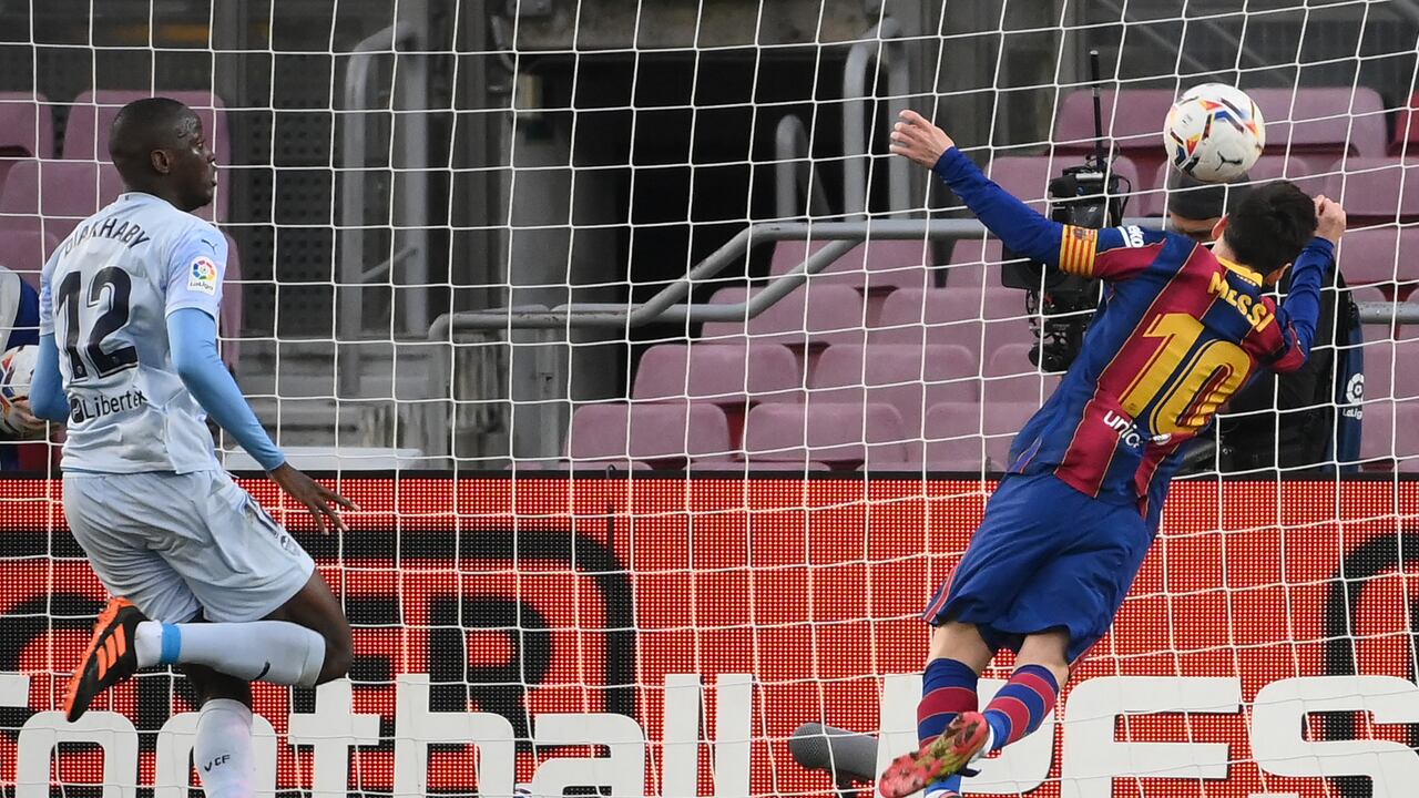 Al cobro fue Messi, pero el arquero Jaume Domenech le ganó el duelo. El rebote cayó en los pies de Jordi Alba, que inmediatamente tiró el centro para que Lío, como el mejor de los '9', hiciera una 'palomita' para igualar el encuentro y convertirse, una vez más, en hombre récord.