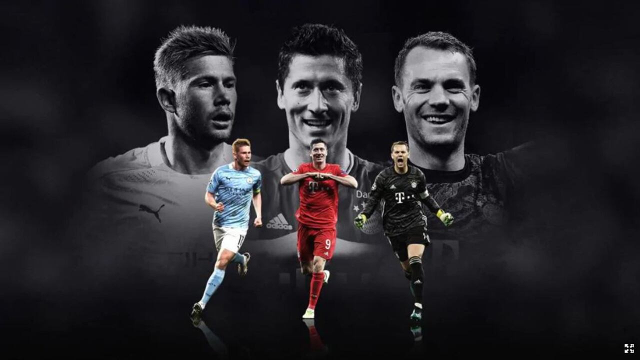 Robert Lewandowski y Manuel Neuer, vencedores de la Liga de Campeones con el Bayern Múnich, y Kevin De Bruyne (Manchester City) son los tres futbolistas que optan al premio al Jugador del Año de la Uefa, dejando fuera a las dos estrellas del París SG, Neymar y Kylian Mbappé.