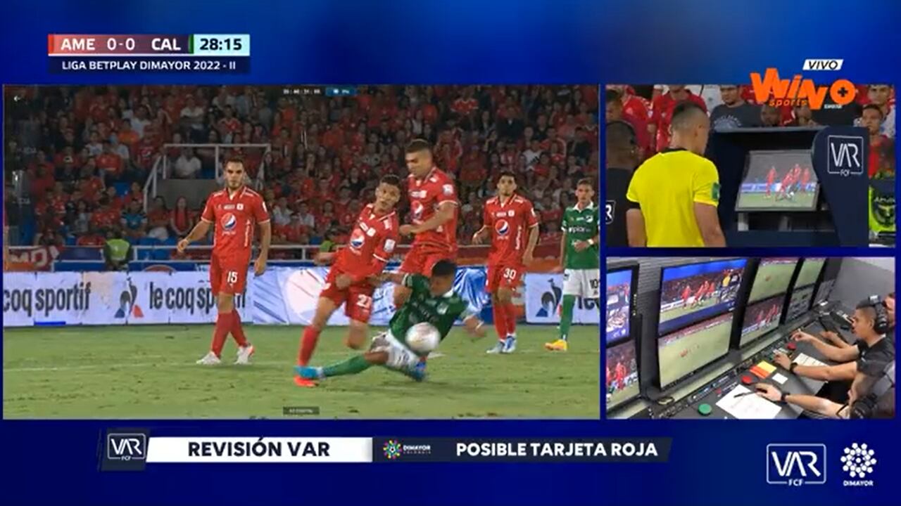 En la jugada donde golpea a Juan Portilla, el central Edilson Ariza sanciona infracción y muestra cartulina amarilla a Salazar. Sin embargo, desde el VAR advierten al central que la jugada es merecedora de cartulina roja y después de revisarla, el juez determina expulsar al futbolistas 'azucarero'.