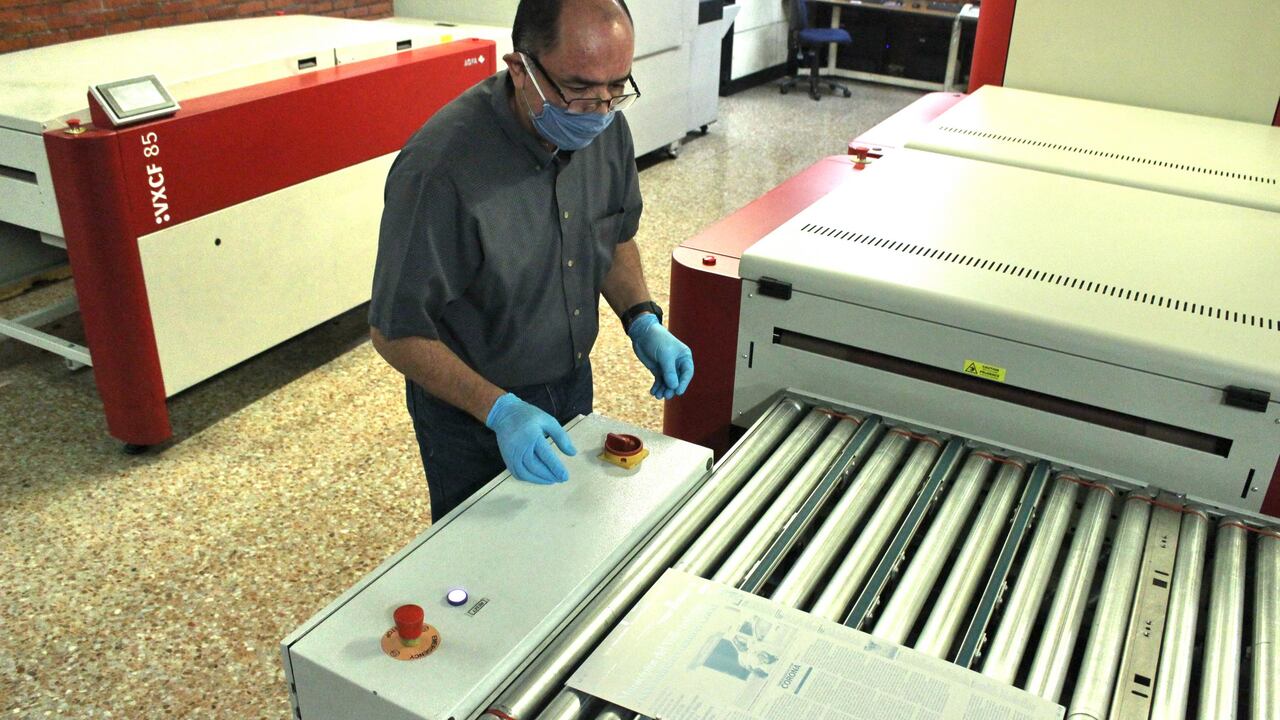 No. El año en el que Luis Alfonso ingresó fue 1985, una era en la que imprimir miles de periódicos era una labor netamente manual y desgastante. “Yo vine a parar aquí, porque un año atrás me había hecho papá. Debía responder por mi familia. Por ese entonces, los horarios eran muy pesados; en las ocasiones más extremas, iban de las 8:00 de la noche hasta la 1:00 de la tarde del día siguiente. Muchos no resistieron. Pero uno por sacar la familia adelante, no he tirado la toalla”, cuenta Luis Alfonso, cuyos lentes se le empañan por el aliento que acumula el tapabocas.