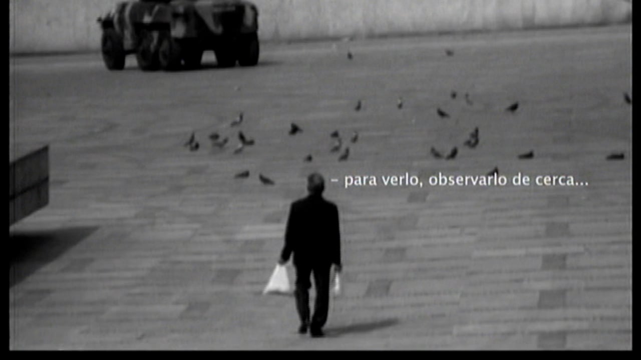 El texto aparece a medida que el espectador ve las imágenes del hombre que alimenta las palomas, aquellas imágenes del oscuro absurdo de aquel día en que, mientras sacaban a quienes luego desaparecerían para siempre del Palacio de Justicia, otro hombre llegaba con una bolsa de alimentos para las aves.