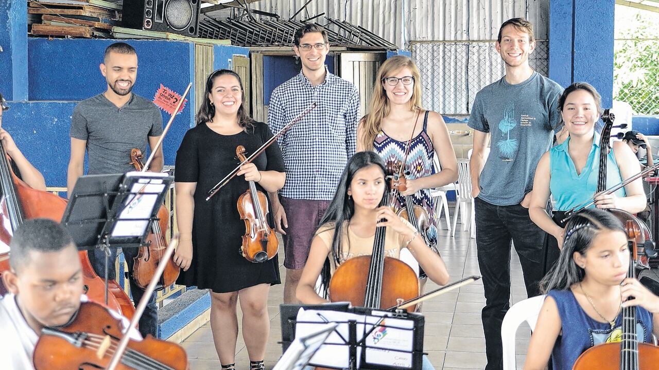 Jóvenes del Bard Conservatory, de Nueva York, vienen a enseñar a niños en Siloé. Tocarán en ‘Música para el cambio’.
