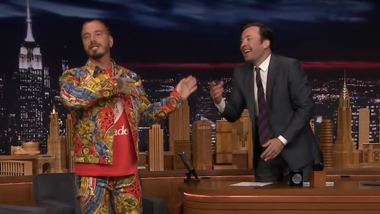 J Balvin fue la estrella invitada al programa de entrevistas del comediante Jimmy Fallon, The Tonight Show, este lunes. Allí sorprendió a la audiencia con un atrevido conjunto deportivo estampado y le dijo al estadounidense que si decidía visitar Colombia, él lo recibiría.