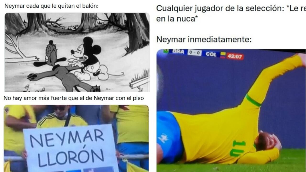 El 'show' de 'Ney' no pasó desapercibido para los cibernautas colombianos, que no ahorraron críticas para la forma en que el '10' brasileño exageraba las infracciones -o incluso simples toques- en su contra.