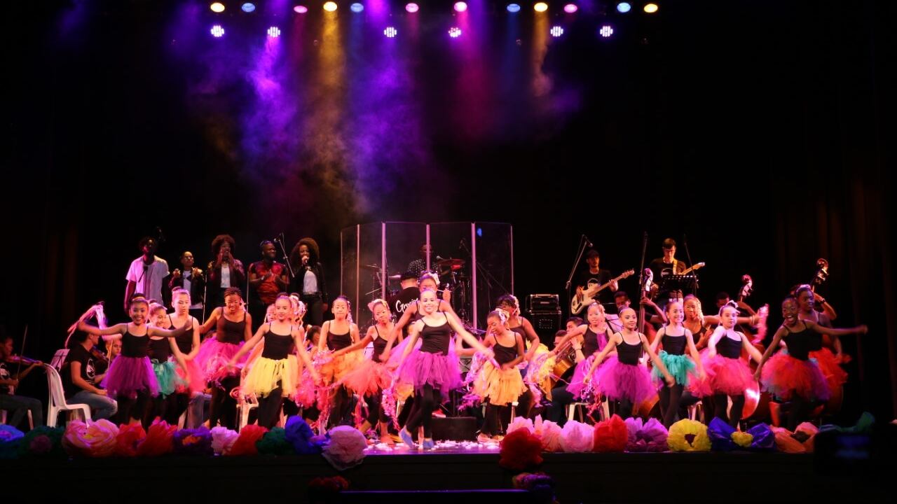 Todo el espectáculo estuvo acompañado de una composición escénica de danza moderna y un montaje escenográfico como muestra del trabajo que viene realizando el Tecnocentro Cultural, por brindar oportunidades y capacidades en cultura, tecnologías y generación de ingresos a niños, jóvenes y adultos en el oriente de Cali.