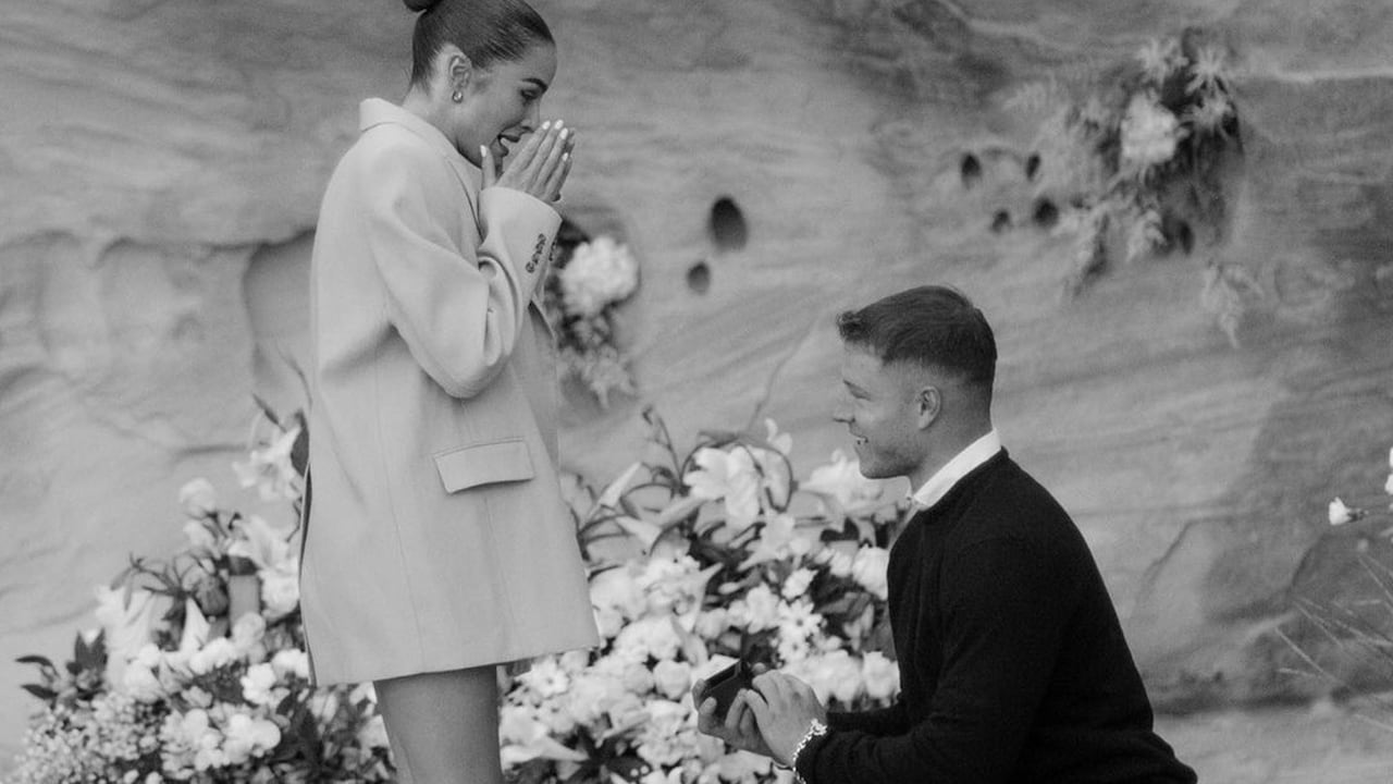 La instagramer compartió en redes sociales la idílica estampa en la que se puede apreciar al deportista arrodillado frente a ella y sobre un fondo de repleto de flores.