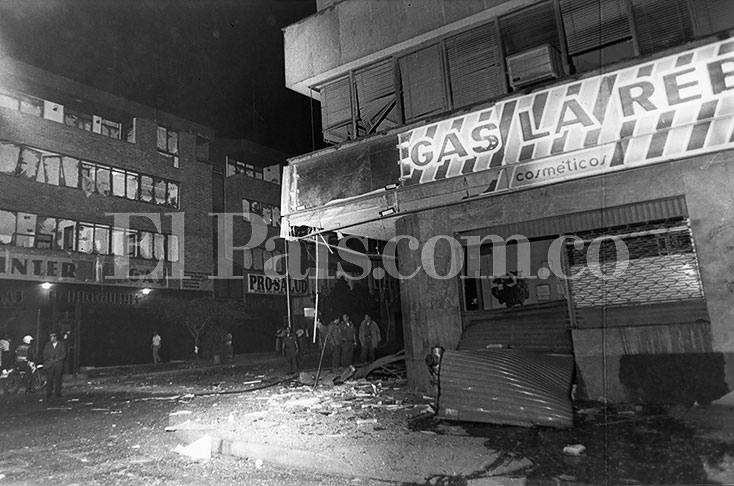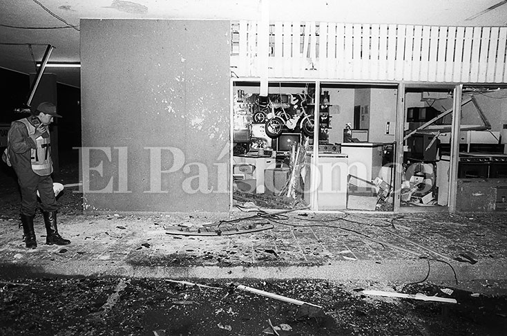 - Dos artefactos explosivos son detonados en las sedes de Davivienda y Extebandes, en pleno centro de la ciudad.
