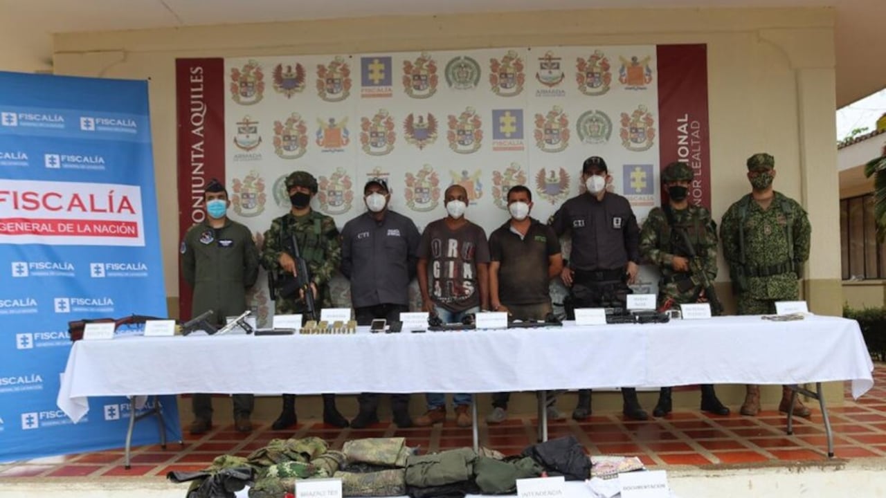 En esta operación las autoridades también reportaron la captura de cuatro personas y se incautaron dos pistolas calibre 9 mm, proveedores, 250 cartuchos 9 mm, equipos de comunicaciones, dos computadores, USB, discos duros, 25.000.000 de pesos en efectivo, 25 gramos de oro en polvo, al igual que material de intendencia y panfletos alusivos a la organización ilegal.